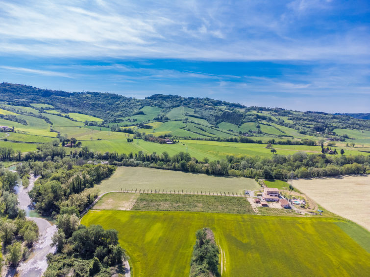 Diese schöne, liebevoll restaurierte Anlage liegt mitten in den Feldern des Val di Cecina, nur ein paar Schritte vom gleichnamigen Flusslauf entfernt. Besonders viel Aufmerksamkeit wurde beim Bau des Pools gelegt, wo ein Sprudelbad (ca. 11 Personen) und ein Kinderbecken in Stein gemeisselt, entstanden sind. Ferienanlage "Podere la Querciola", auf 2 Stockwerken, renoviert im Jahre 2021, umgeben von Wiesen und Feldern. Im Ortsteil Casino di Terra, 11 km vom Zentrum von Guardistallo, 14 km vom Zentrum von Cecina, alleinstehende, ruhige Lage, 16 km vom Meer. Zur Mitbenutzung: Grundstück mit Pflanzen und Bäumen, Schwimmbad (6 x 11 m, 150 cm tief, saisonale Verfügbarkeit: 01.Mai. - 15.Okt.). Kinderbecken, Aussendusche, Sprudelbad, Gartenmöbel, Grill. In der Anlage: Wireless LAN, Waschmaschine (extra). Zufahrt (700 m Naturweg). Parkplatz. Einkaufsgeschäft 11 km, Restaurant 2 km, Bar 2 km, Bushaltestelle 1.1 km, Sandstrand "Marina di Cecina" 16 km. Nahe gelegene Sehenswürdigkeiten: Volterra 24 km, Pisa 70 km, Firenze 100 m.