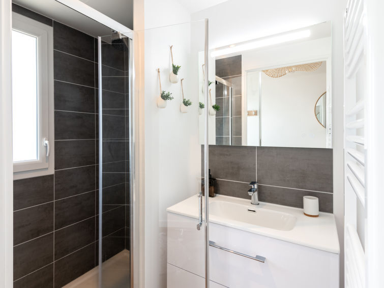 "Jade", appartement 2-kamers 40 m2 op de 1e verdieping. Comfortabel en modern ingericht: woon-/eetkamer met 1 divanbed (140 cm, lengte 190 cm), TV (Flatscreen TV), air-conditioning. 1 kamer met 1 2-pers bed (1 x 160 cm, lengte 200 cm). Open keuken (oven, afwasmachine, 1 inductiekookplaten, 2 kookpitten (vlammen), broodrooster, waterkoker, magnetron, diepvriezer, elektrische koffiemachine, pads voor de koffiemachine (nespresso) extra). Douche, aparte WC. Elektrische verwarming. Balkon 13 m2, op het zuiden gelegen en op het westen gelegen. Terrasmeubelen. Ter beschikking: wasmachine, strijkijzer, haardroger. Internet (WiFi, gratis). Parkeerplaats nr. A13. Niet rokers woning. Maximaal 1 huisdier/hond toegestaan. Rookmelders. Aanbod door een particulier volgens art. 155, IV van CGI.