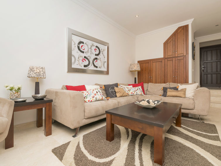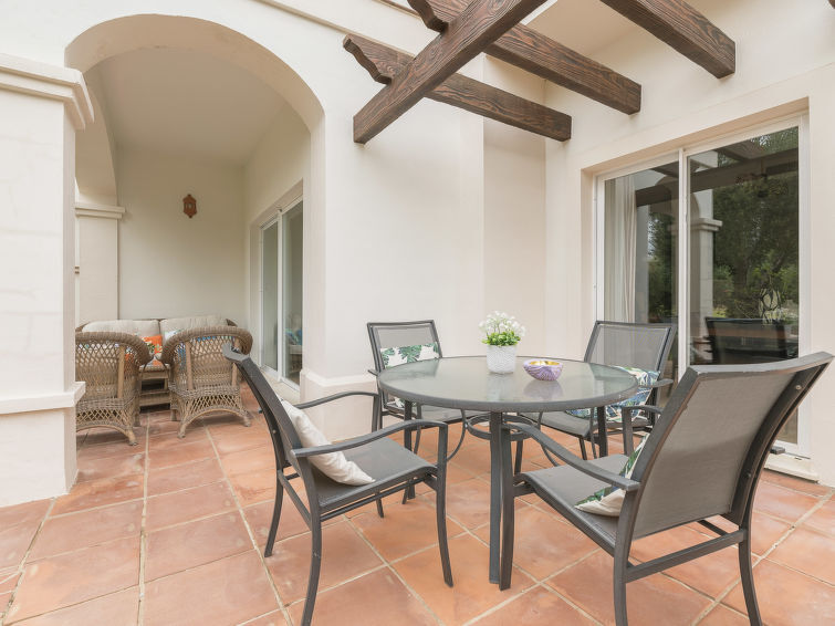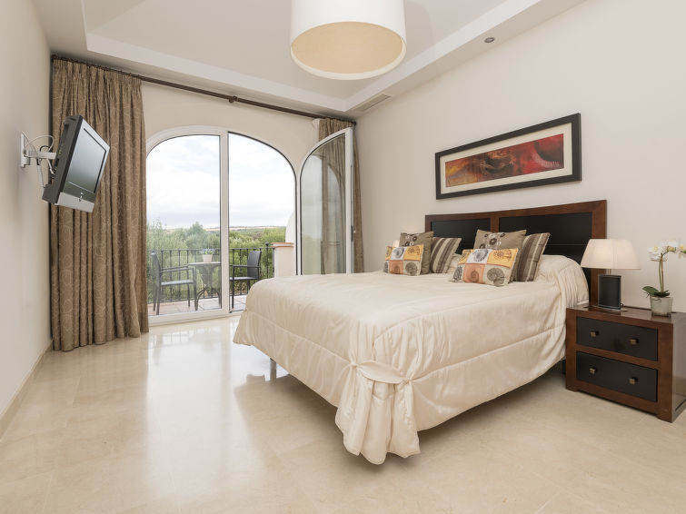Comfortabel vakantiecomplex "Arcos Gardens Golf". Rustige, zonnige ligging, aan de golfbaan. Voor medegebruik: tuin met gazon, openluchtzwembad (18 x 9 m, 120 - 180 cm diepte, seizoensgebonden beschikbaarheid: 01.Apr. - 31.Okt.). Kinderzwembad, tennisbaan (extra), parkeerplaats. Bushalte 6 km, treinstation 38 km. Golfterrein (18 holes) 20 m. Wandelgebied Sierra de Grazalema 18 km. De eigenaar accepteert geen jeugdgroepen. Vliegveld 40 km van het huis. De omgeving is gevoelig voor geluidsoverlast. Gelieve geen lawaai te maken en de rust te bewaren.