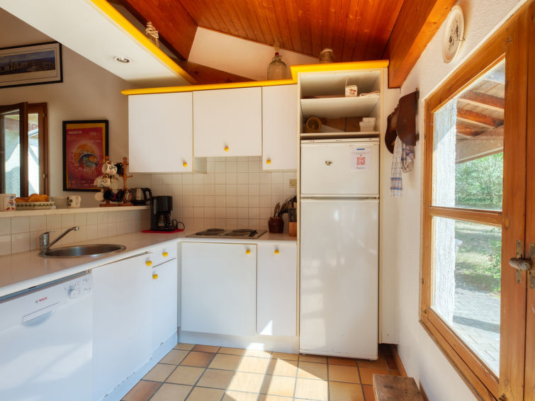 Huis 5-kamers 100 m2. Woon-/eetkamer met open haard en elektrische verwarming. Uitgang naar het terras. 2 kamers, elke kamer heeft 1 2-pers bed (140 cm, lengte 190 cm). 2 kamers, elke kamer heeft 2 bedden (90 cm, lengte 190 cm). Open keuken (4-pits kookplaat, afwasmachine, combimagnetron). 2 douches, 2 aparte WC's. Terras gedeeltelijk overdekt. Terrasmeubelen. Ter beschikking: wasmachine. Internet (Internet (WiFi), gratis). Niet rokers woning. Rookmelders.