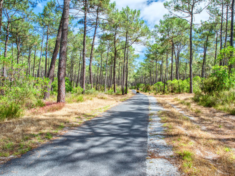La Grande Escoure 6 km van Lacanau-Océan: Eengezinswoning "Club de la Voile". Rustige ligging, 6 km van zee, 50 m van het meer. Voor alleengebruik: wild terrein 900 m2 (omheind), parkeerplaats op het terrein. Supermarkt 7 km, restaurant 3 km, bushalte "La grande Escoure" 300 m, zandstrand "Lacanau Océan" 9 km, meer (zwemmen) "Lac de Lacanau" 100 m. Golfterrein (18 holes) 4 km, surfschool 8 km, tennis 4 km. Attracties in de buurt: Dune du Pilat 90 m, Bordeaux 60 m, Saint Emilion 98 m, Cap Ferret 48 m. Bekende meren kunnen gemakkelijk worden bereikt: Moutchic 100 m, Maubuisson 13 km. Wandelgebied Vélodyssée 5 km. Auto noodzakelijk. De sleuteloverdracht vindt plaats bij het agentschap Interhome in Lacanau, 8 km.