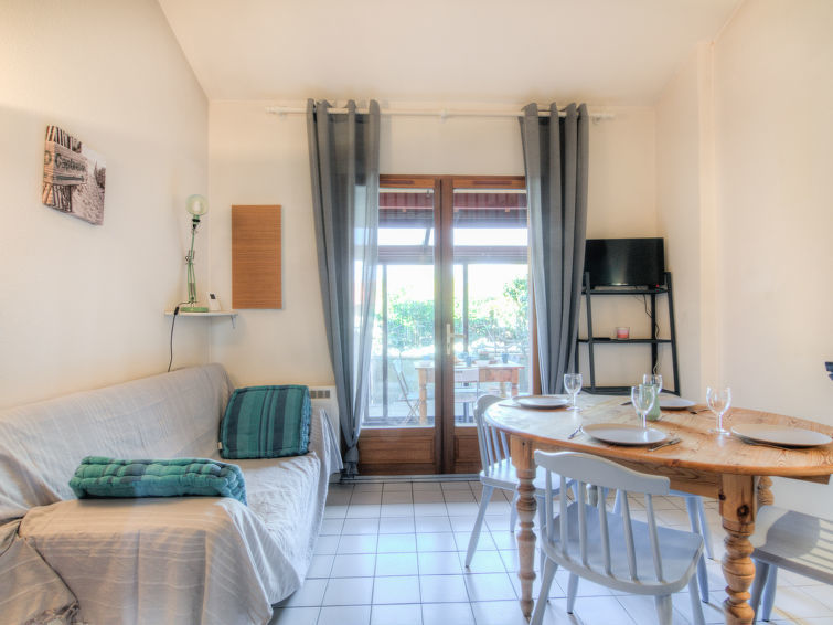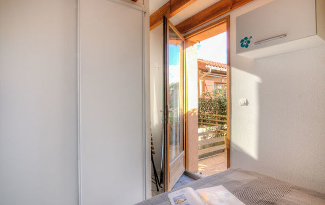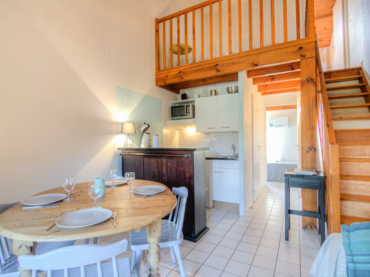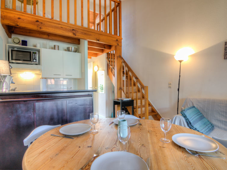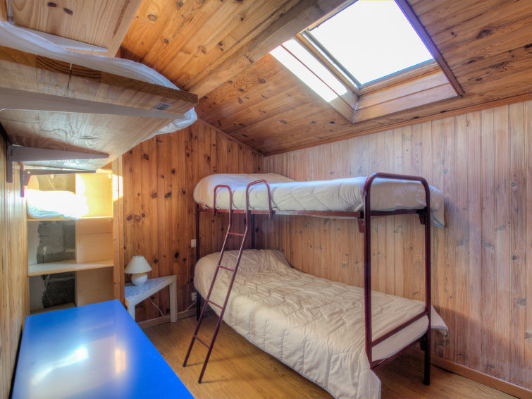 Huis in een rij 3-kamers 42 m2 op 2 verdiepingen. Doelmatig en comfortabel ingericht: woon-/eetkamer 13 m2 met TV (Flatscreen TV). Uitgang naar de veranda. 1 kleine kamer 7 m2 met 1 2-pers bed (140 cm, lengte 190 cm). Uitgang naar het terras. Kookhoek (4-pits kookplaat, magnetron, elektrische koffiemachine). Douche, aparte WC. Bovenverdieping: open galerij 5 m2 met 1 divanbed (130 cm, lengte 200 cm). 1 kinderkamer 7 m2 met 1 x 2 stapelbedden (90 cm, lengte 190 cm). Terrasmeubelen, barbecue. Ter beschikking: wasmachine. Internet (Internet (WiFi), extra). Parkeerplaats nr. 48. Let op: geschikt voor families. Niet rokers woning. Rookmelders. 40065000038DV