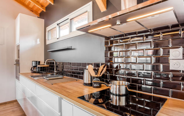Huis 5-kamers 110 m2. Mooi ingericht: woon-/eetkamer 32 m2. Uitgang naar het terras. 1 kamer 11 m2 met 1 2-pers bed (160 cm, lengte 200 cm), douche en dubbele wastafels. Salon 14 m2 met 1 2-pers divanbed (160 cm, lengte 200 cm), TV en internationale TV-zenders (Flatscreen TV). 1 kinderkamer 9 m2 met 2 x 2 stapelbedden (90 cm, lengte 190 cm), douche. 1 kamer 10 m2 met Kleedkamer met 1 2-pers bed (1 x 160 cm, lengte 200 cm), douche/WC. Kookhoek (oven, afwasmachine, 1 inductiekookplaten, magnetron, diepvriezer, elektrische koffiemachine). Douche/WC, 2 aparte WC's. Air-conditioning, heteluchtverwarming. Terrasmeubelen, barbecue. Ter beschikking: wasmachine, droger, strijkijzer, kinderstoel, haardroger. Internet (Internet (WiFi), gratis). Parkeerplaats (omheind, 2 Auto's). Let op: 1 klein huisdier/hond toegestaan. Rookmelders.