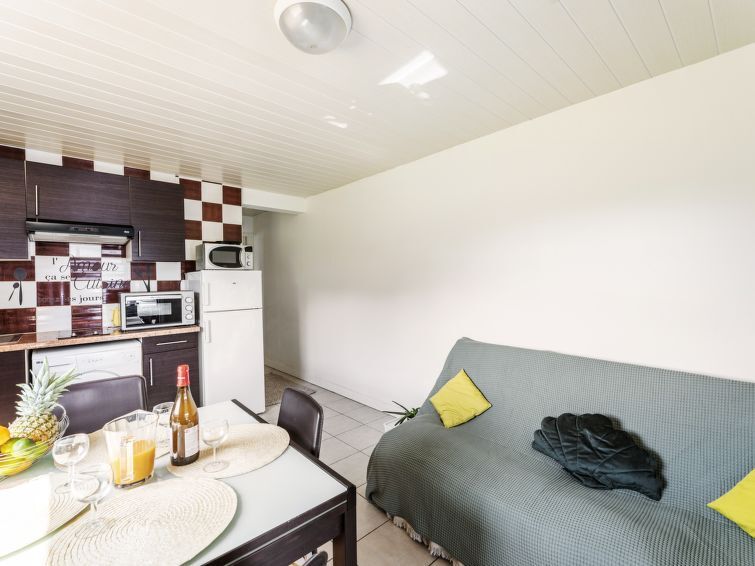 Appartement 2-kamers 35 m2, op de begane grond. Mooi ingericht: woon-/eetkamer met 1 2-pers divanbed (140 cm, lengte 190 cm), TV (Flatscreen TV). Uitgang naar het terras. 1 kamer met 1 2-pers bed (140 cm, lengte 190 cm). Open keuken (2 keramische glas kookplaten, broodrooster, waterkoker, diepvriezer, elektrische koffiemachine, combimagnetron). Douche/WC. Elektrische verwarming. Terras 12 m2, op het westen gelegen, groot tuin 400 m2, op het zuiden gelegen. Terrasmeubelen, barbecue, ligstoelen. Ter beschikking: wasmachine, strijkijzer, haardroger. Internet (Internet (WiFi), gratis). Parkeerplaats (omheind, 1 Auto). Niet rokers woning. Rookmelders. 64024002568B5