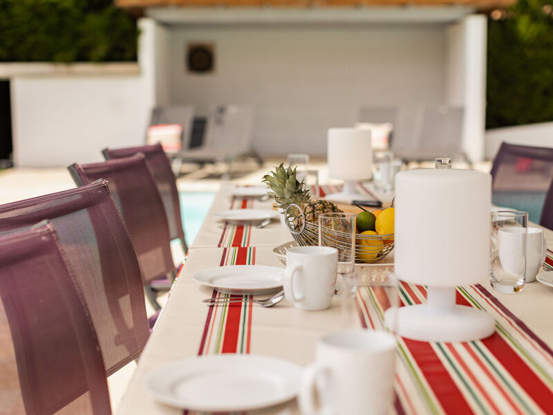 Villa 5-kamers 220 m2. Ruim en licht, gedeeltelijk gerenoveerd in 2024, comfortabel en modern ingericht: woon-/eetkamer met TV (Flatscreen TV). Uitgang naar het terras, naar het zwembad. Open keuken (oven, afwasmachine, 3 inductiekookplaten, broodrooster, waterkoker, magnetron, diepvriezer, elektrische koffiemachine, pads voor de koffiemachine (Senseo) extra). Uitgang naar het terras, naar het zwembad. Aparte WC. Bovenverdieping: 1 kamer met Kleedkamer met 1 2-pers bed (160 cm, lengte 200 cm), douche en dubbele wastafels. 1 kamer met 1 2-pers bed (140 cm, lengte 190 cm). Uitgang naar het balkon, op het zuiden. 1 kamer met 1 2-pers bed (140 cm, lengte 190 cm). 1 kamer met 2 bedden (90 cm, lengte 190 cm). Douche, aparte WC, dubbele wastafels. Air-conditioning, heteluchtverwarming. Groot terras 200 m2, op het zuidwesten gelegen. Terrasmeubelen, elektrische barbecue, ligstoelen (8). Ter beschikking: wasmachine, droger, strijkijzer, kinderbed, haardroger. Internet (Internet (WiFi), gratis). Parkeerplaats (omheind, 2 Auto's). Geschikt voor families. Rookvrij huis. Rookmelders. Aanbod door een particulier volgens art. 155, IV van CGI. 640240033475F