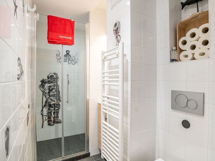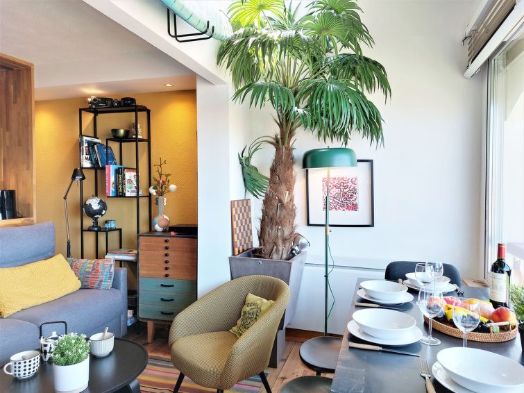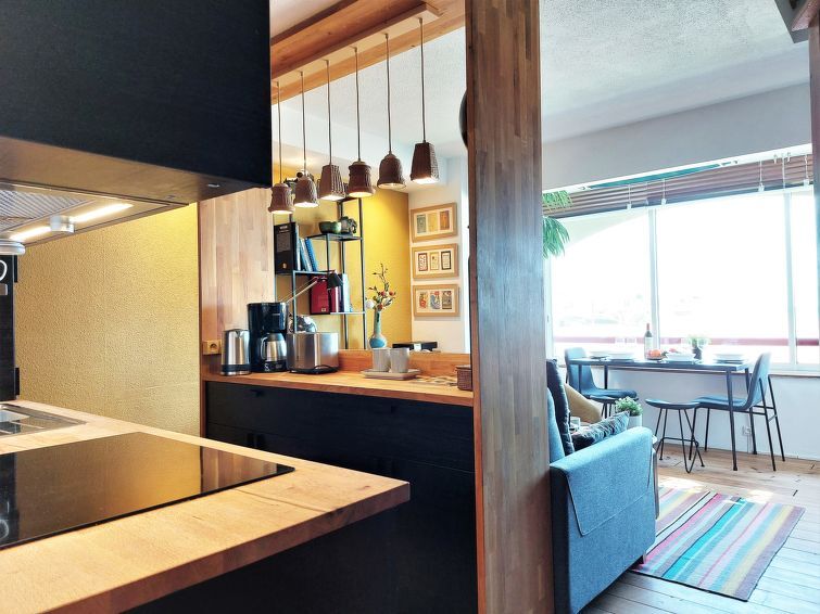 Appartement 2-kamers 37 m2 op de 2e verdieping. Volledig gerenoveerd in 2019, mooi en modern ingericht: woon-/eetkamer met panoramavenster met 1 2-pers divanbed (140 cm, lengte 190 cm), TV (Flatscreen TV). 1 kamer met 1 2-pers bed (140 cm, lengte 190 cm). Kookhoek (oven, afwasmachine, 4 keramische glas kookplaten, broodrooster, waterkoker, elektrische koffiemachine, combimagnetron). Douche/WC. Elektrische verwarming. Mooi uitzicht op zee en het zwembad. Ter beschikking: wasmachine, haardroger. Internet (Internet (WiFi), gratis). Parkeerplaats nr. 137. Niet rokers woning. Rookmelders, geen lift. 64125002034D4